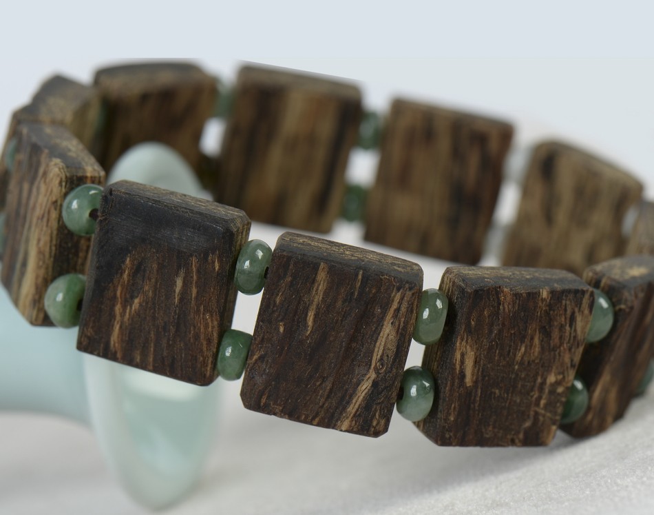 沉香手串相配适合品性相近的配珠,尽量避免选择金银等。因为沉香本身油脂含量比较丰富,质地上自然没有金银坚硬,很容易在日常生活中刮伤或者是碰撞。一般而言,配伍沉香的珠子更倾向于选择玛瑙、玉石等性质比较温润的材质。这些配珠不仅在颜色可以和沉香互为补充,而且其特性与沉香的秉性类似,配在一起相得益彰,丝毫不显轻佻浮躁,也不会拉低沉香的身价。